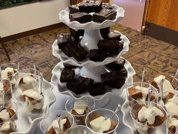 Pies, Cupcakes, Pound Cake With Fresh Fruit, Assortment of Cookies and Cakes, Pineapple Upside Down Cake, Blueberry Coffee Cake, Angel Food Cake With Fresh Fruit, Chocolate Fudge Cake With Peanut Butter Frosting, Chocolate Fudge Cake With Red Raspberry Filling, Candy, Puddings, Gingerbread With Cool Whip, Fruit Salad, Cherry, Peach & Apple Crisp, Brownies, Banana & Pumpkin Bread, & MORE!